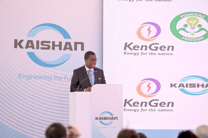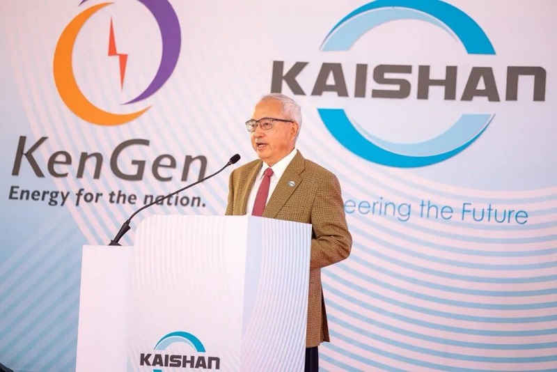 湯炎博士也在儀式上講話。他強(qiáng)調(diào)指出:我們已經(jīng)為肯尼亞綠色工業(yè)化完成了兩個(gè)地?zé)犭姀S,開山Olkaria 地?zé)犭姀S和綠色化肥廠是開山在肯尼亞的下一個(gè)里程碑,是開山在清潔能源發(fā)展征程上又一個(gè)新的篇章。我們要使用肯尼亞能源公司的地?zé)嵴羝a(chǎn)165 MW清潔電能,并用這一清潔電能制氫、生產(chǎn)綠氨,最終生產(chǎn)出超過48萬噸的綠色化肥。特別需要特別指出的是,開山Olkaria 地?zé)犭姀S是世界上第一座零排放的地?zé)犭姀S。地?zé)嵴羝械?/span>不凝性氣體將被完全回收生產(chǎn)CO2,并送往綠色化肥廠作為生產(chǎn)尿素的原料。我們在創(chuàng)造歷史,零排放地?zé)岚l(fā)電廠的歷史,綠色化肥生產(chǎn)的歷史,非洲綠色工業(yè)化的歷史,并將激勵(lì)全球綠色能源和綠色工業(yè)化的發(fā)展。